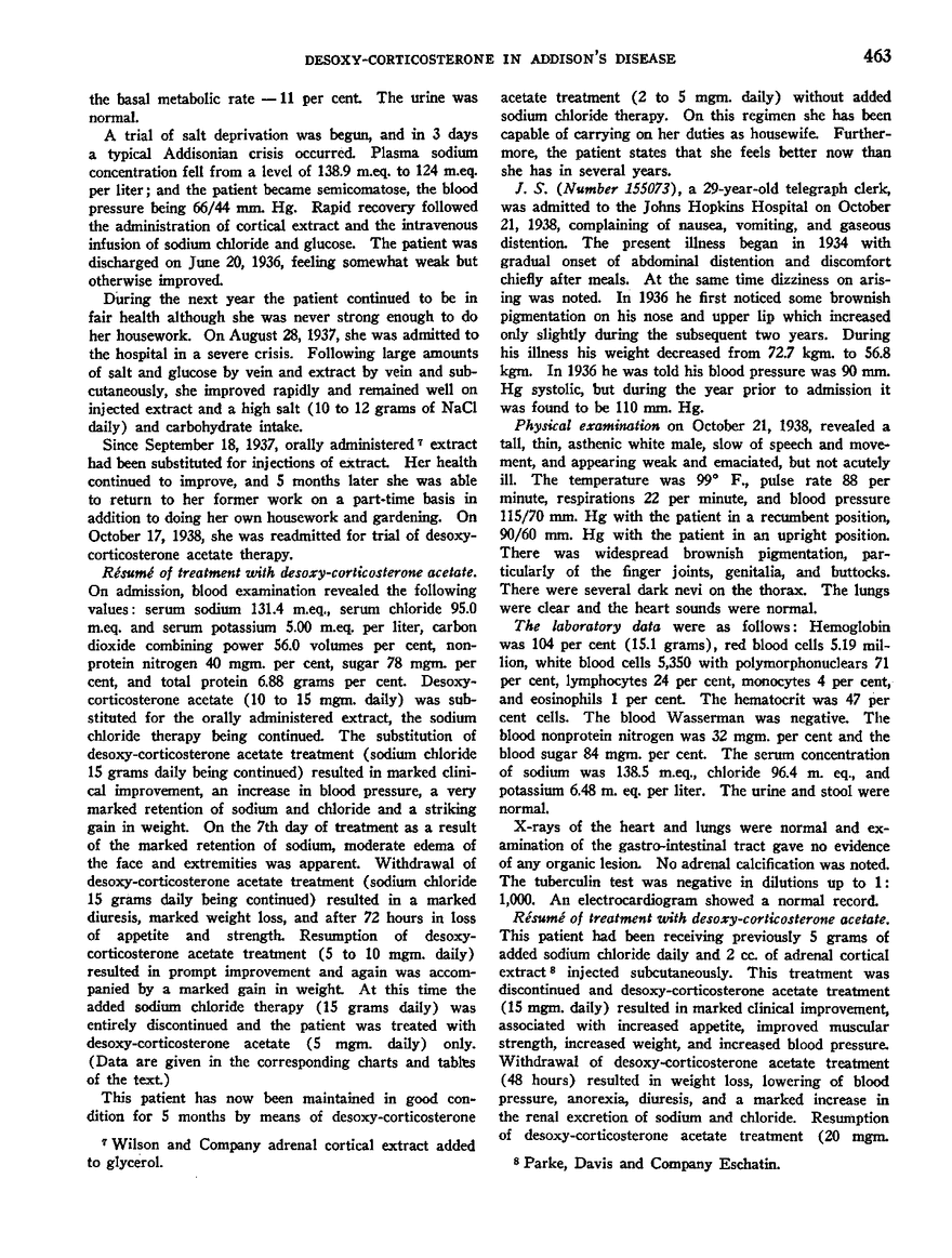 TREATMENT OF ADDISON'S DISEASE WITH DESOXY-CORTICOSTERONE ACETATE, A SYNTHETIC ADRENAL CORTICAL HORMONE (PRELIMINARY REPORT)