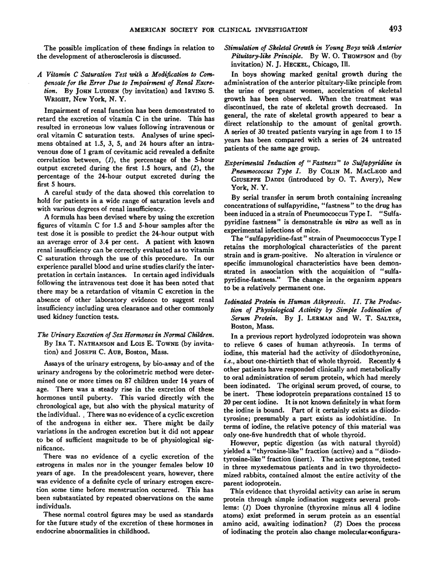 PROCEEDINGS OF THE THIRTY-FIRST ANNUAL MEETING OF THE AMERICAN SOCIETY FOR CLINICAL INVESTIGATION HELD IN ATLANTIC CITY, N. J., MAY 1, 1939