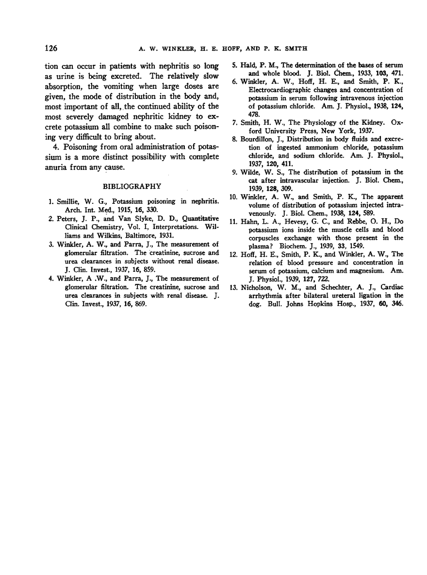 A. W. Winkler, H. E. Hoff, P. K. Smith