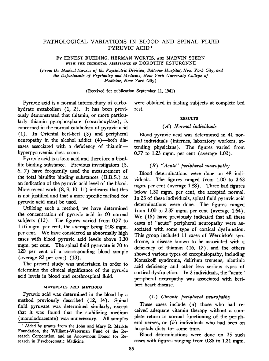 PATHOLOGICAL VARIATIONS IN BLOOD AND SPINAL FLUID PYRUVIC ACID