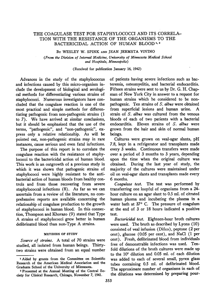 THE COAGULASE TEST FOR STAPHYLOCOCCI AND ITS CORRELATION WITH THE RESISTANCE OF THE ORGANISMS TO THE BACTERICIDAL ACTION OF HUMAN BLOOD