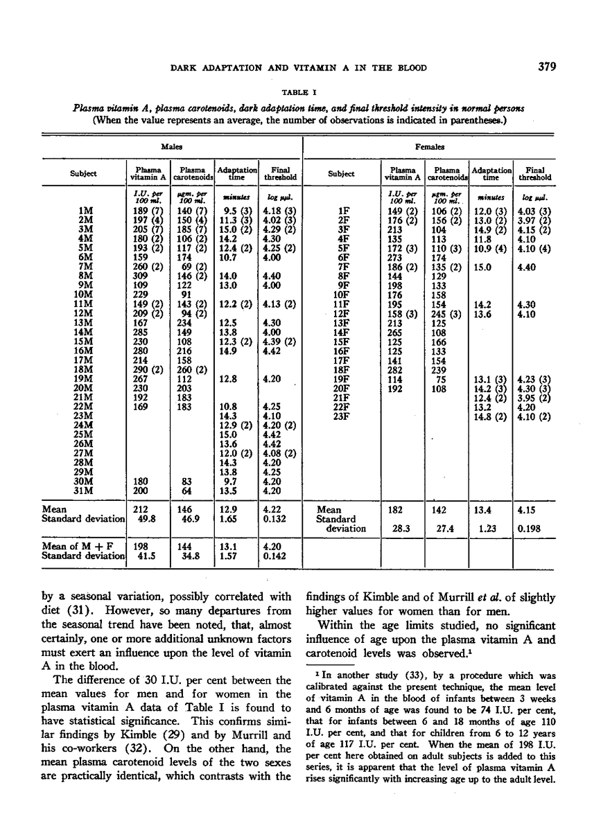 THE RELATION BETWEEN DARK ADAPTATION AND THE LEVEL OF VITAMIN A IN THE BLOOD