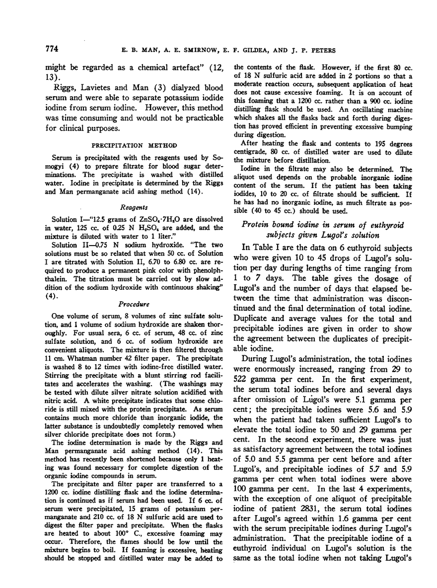 E. B. Man, A. E. Smirnow, E. F. Gildea, J. P. Peters