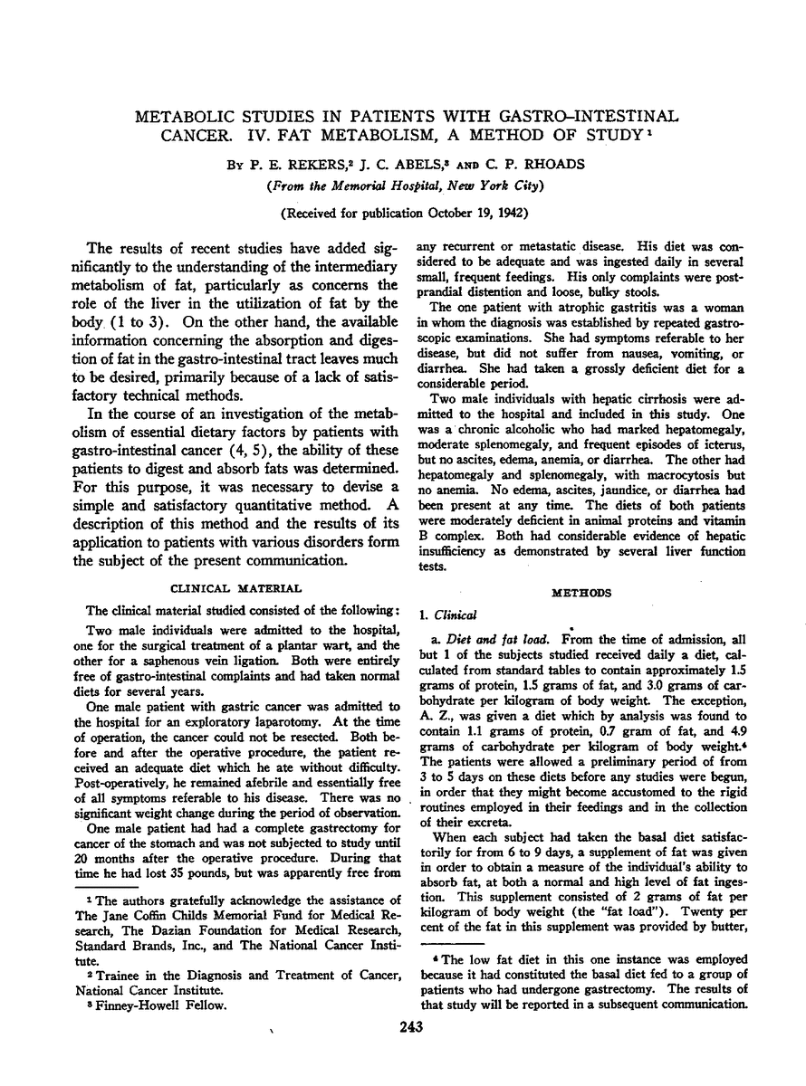 METABOLIC STUDIES IN PATIENTS WITH GASTRO-INTESTINAL CANCER. IV. FAT METABOLISM, A METHOD OF STUDY