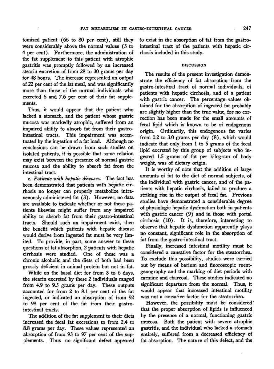 METABOLIC STUDIES IN PATIENTS WITH GASTRO-INTESTINAL CANCER. IV. FAT METABOLISM, A METHOD OF STUDY