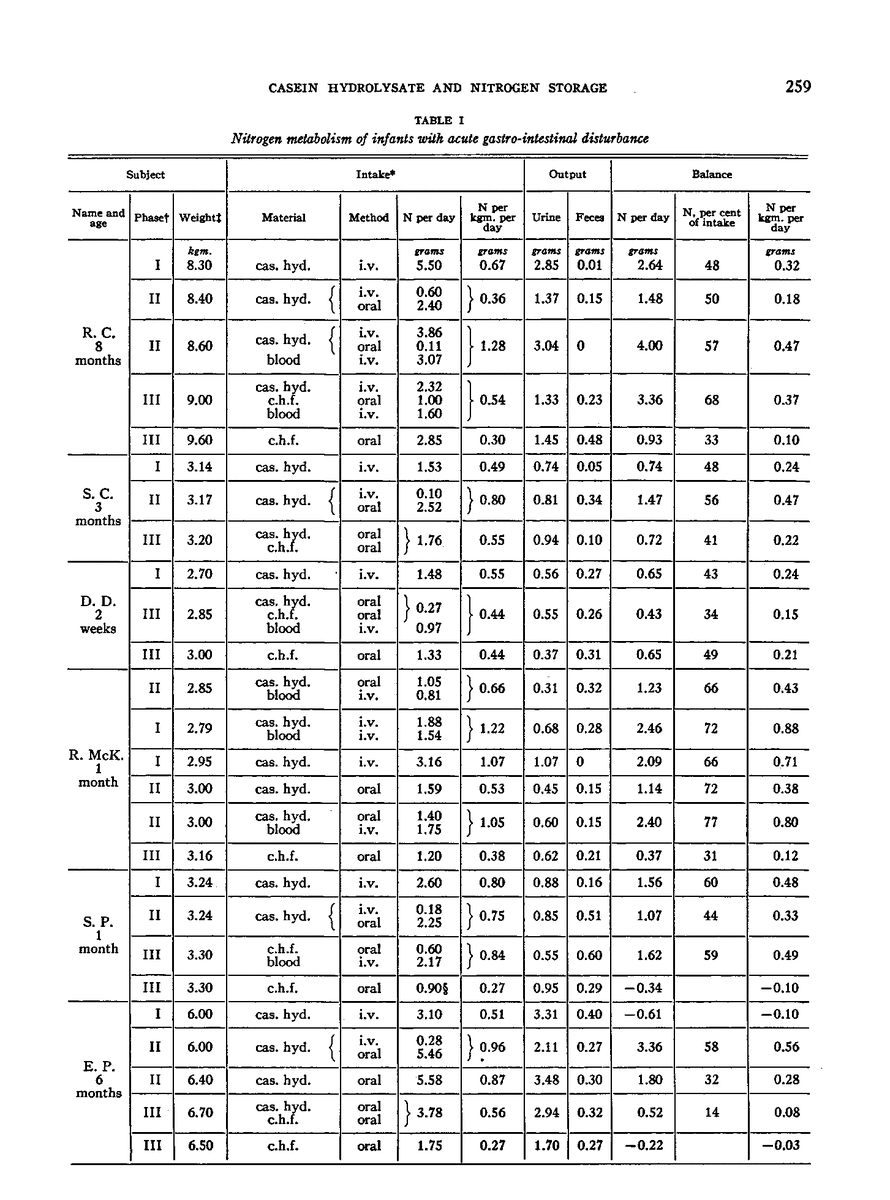 NITROGEN STORAGE FOLLOWING INTRAVENOUS AND ORAL ADMINISTRATION OF CASEIN HYDROLYSATE TO INFANTS WITH ACUTE GASTRO-INTESTINAL DISTURBANCE