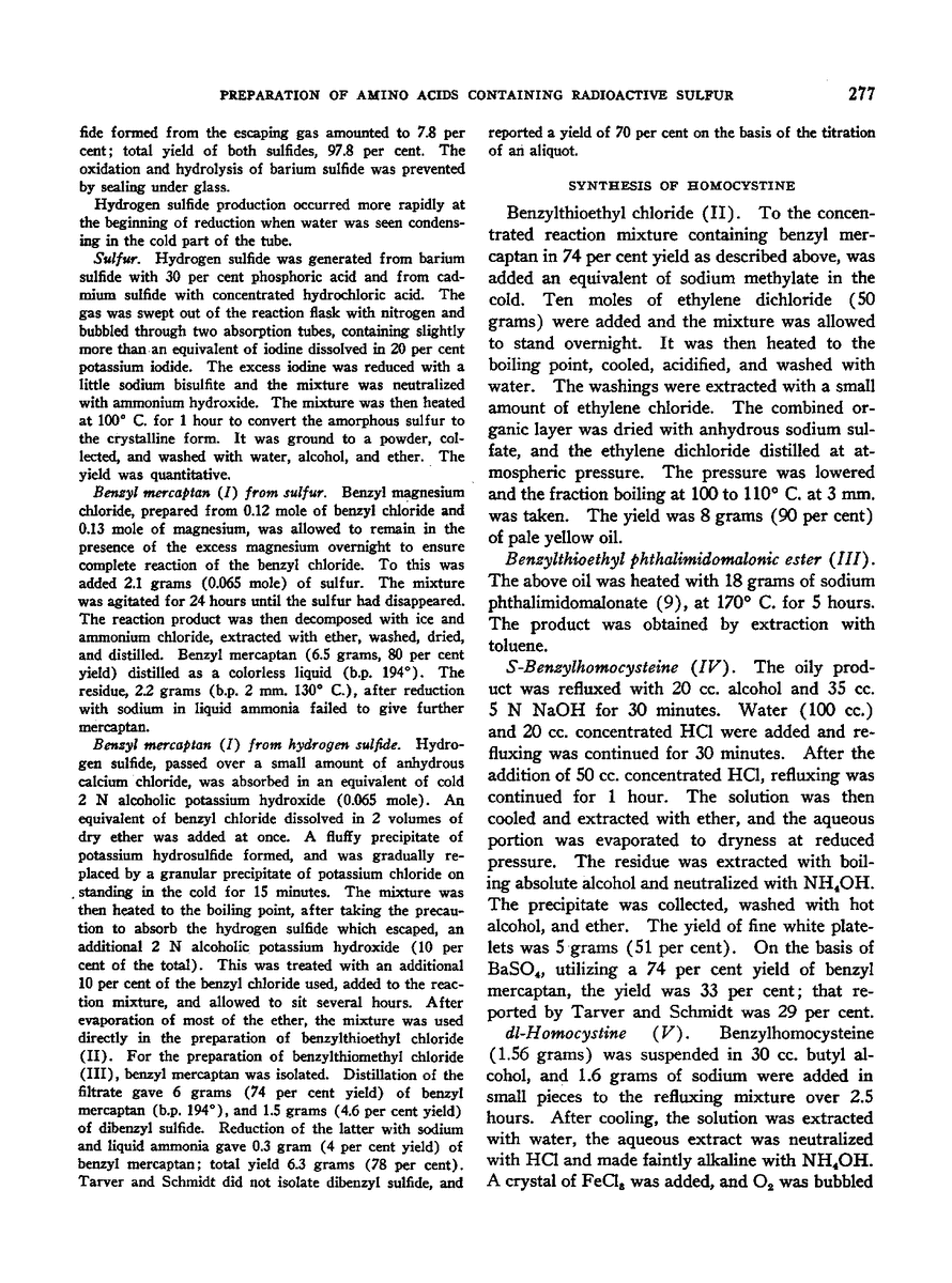 TRAUMATIC SHOCK. II. THE PREPARATION OF CYSTINE, METHIONINE, AND HOMOCYSTINE CONTAINING RADIOACTIVE SULFUR