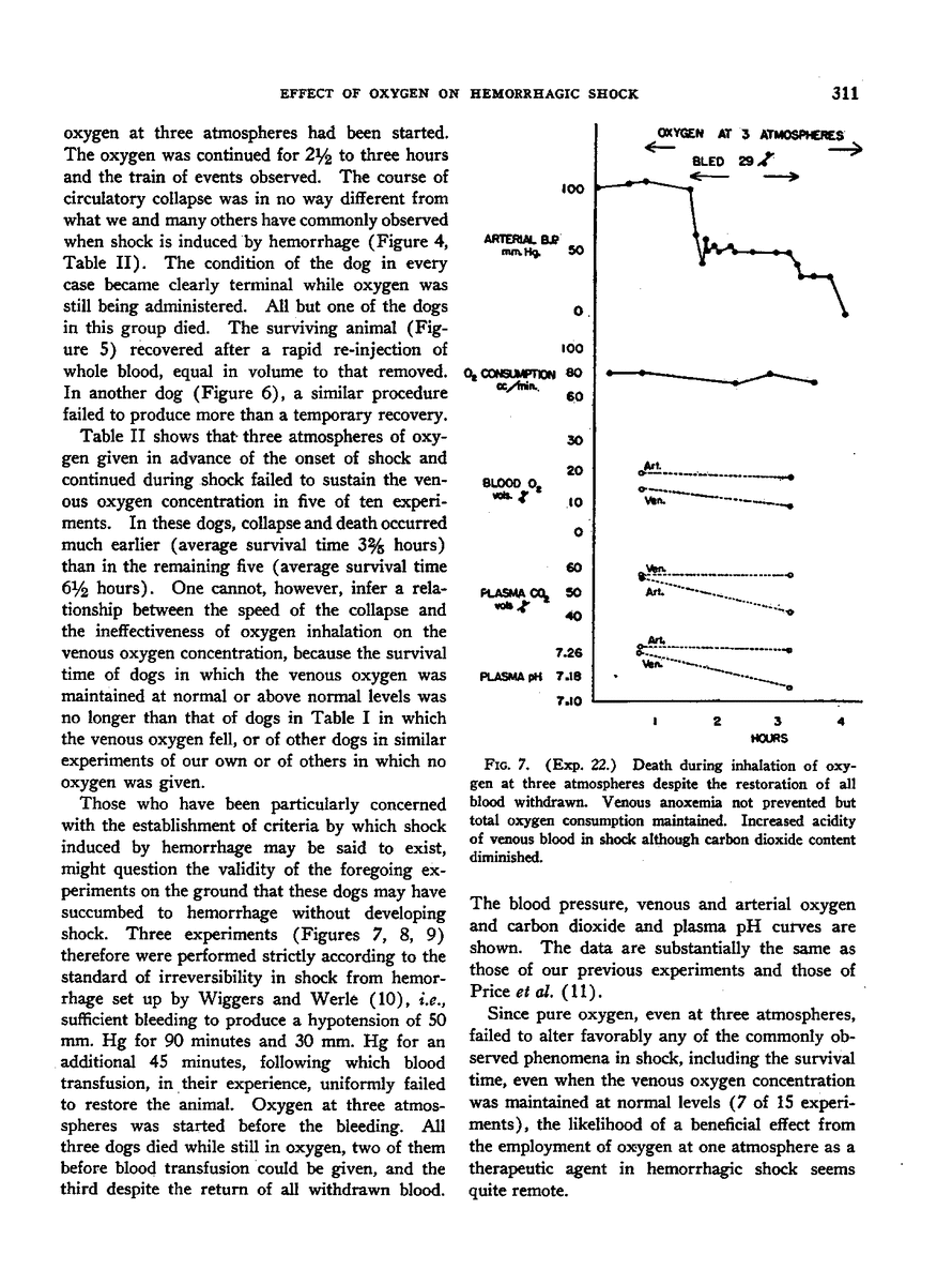 TRAUMATIC SHOCK. V. A STUDY OF THE EFFECT OF OXYGEN ON HEMORRHAGIC SHOCK