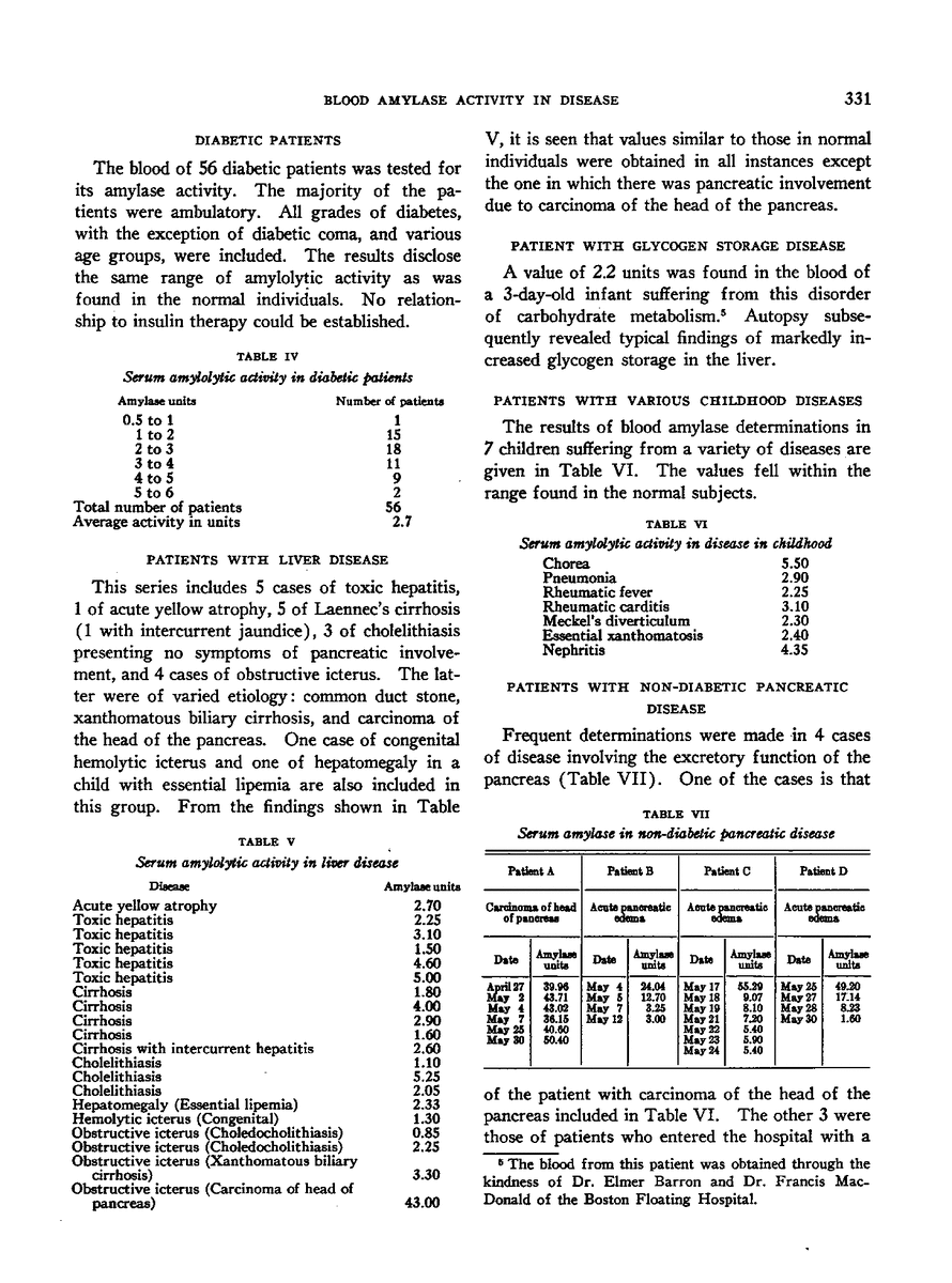 BLOOD AMYLASE ACTIVITY IN DISEASE OF CARBOHYDRATE METABOLISM AND IN NON-DIABETIC PANCREATIC DISEASE