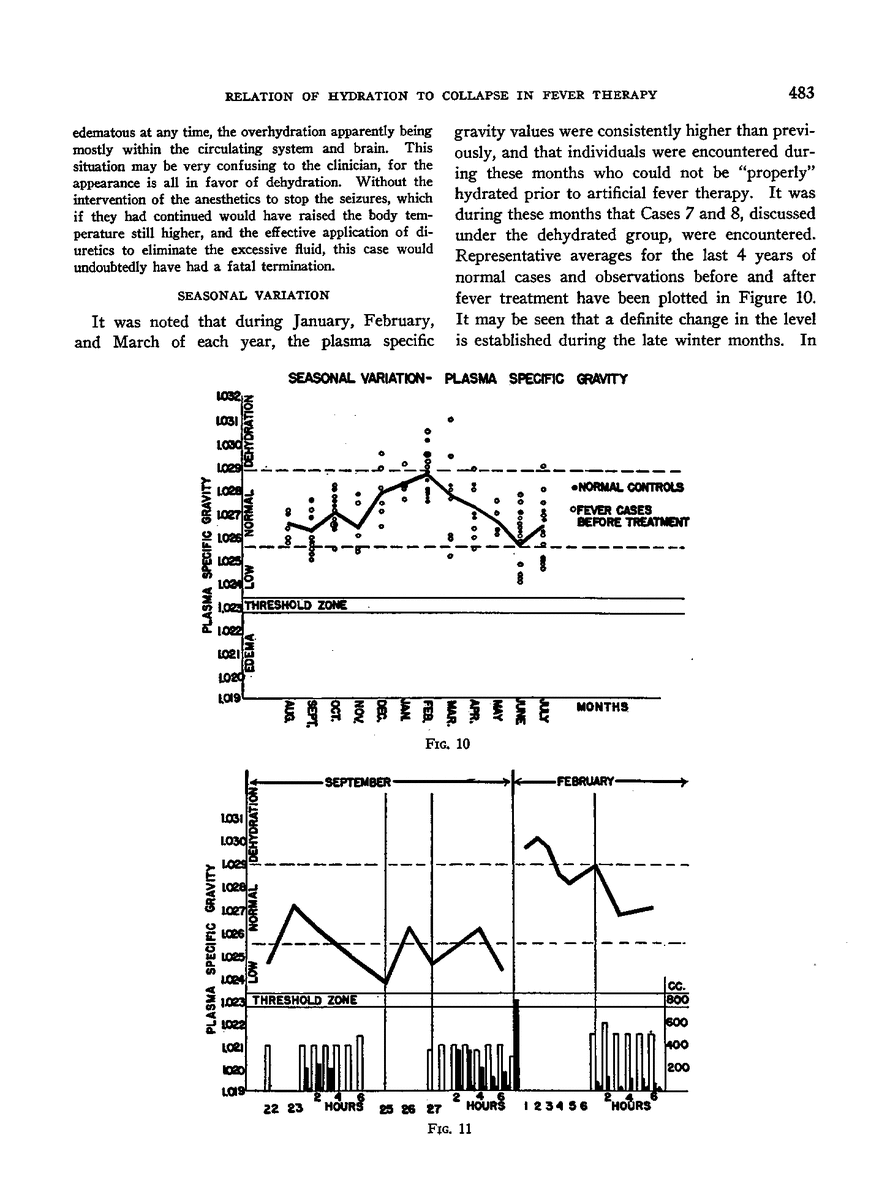 THE RELATIONSHIP OF DEHYDRATION AND OVERHYDRATION OF THE BLOOD PLASMA TO COLLAPSE IN THE MANAGEMENT OF ARTIFICIAL FEVER THERAPY