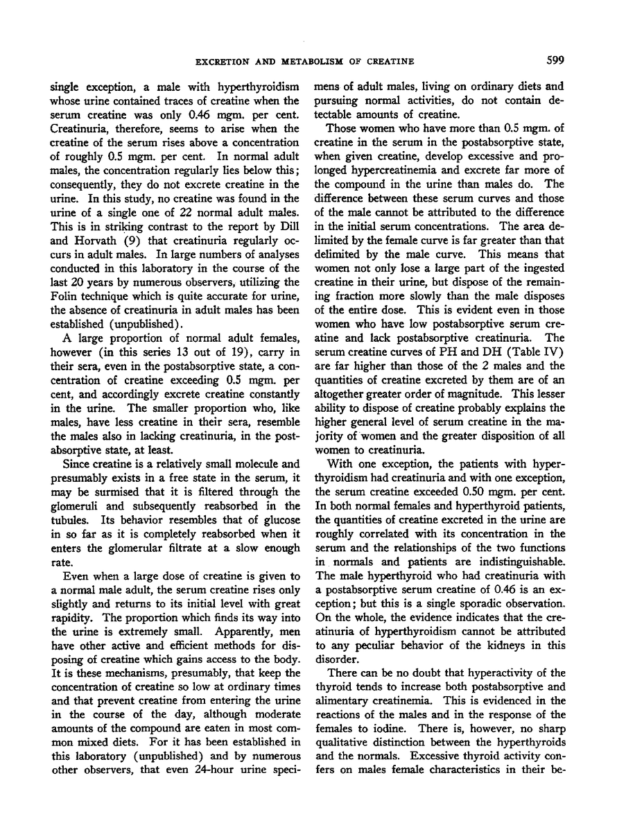 THE MODE OF EXCRETION OF CREATINE AND CREATINE METABOLISM IN THYROID DISEASE