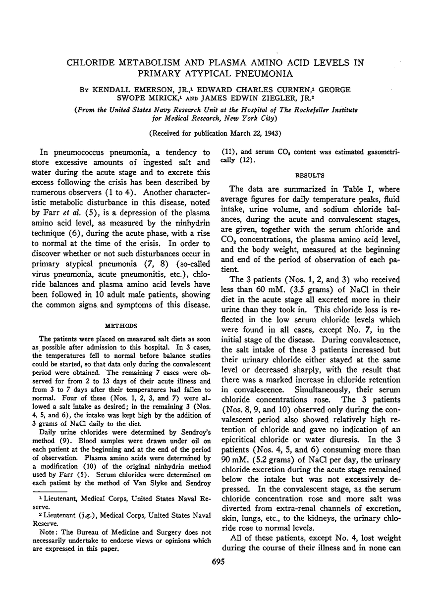 CHLORIDE METABOLISM AND PLASMA AMINO ACID LEVELS IN PRIMARY ATYPICAL PNEUMONIA