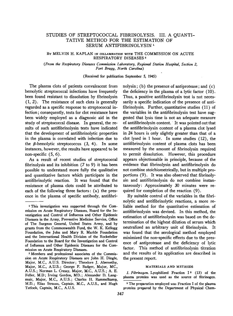 Melvin H. Kaplan, The Commission on Acute Respiratory Diseases