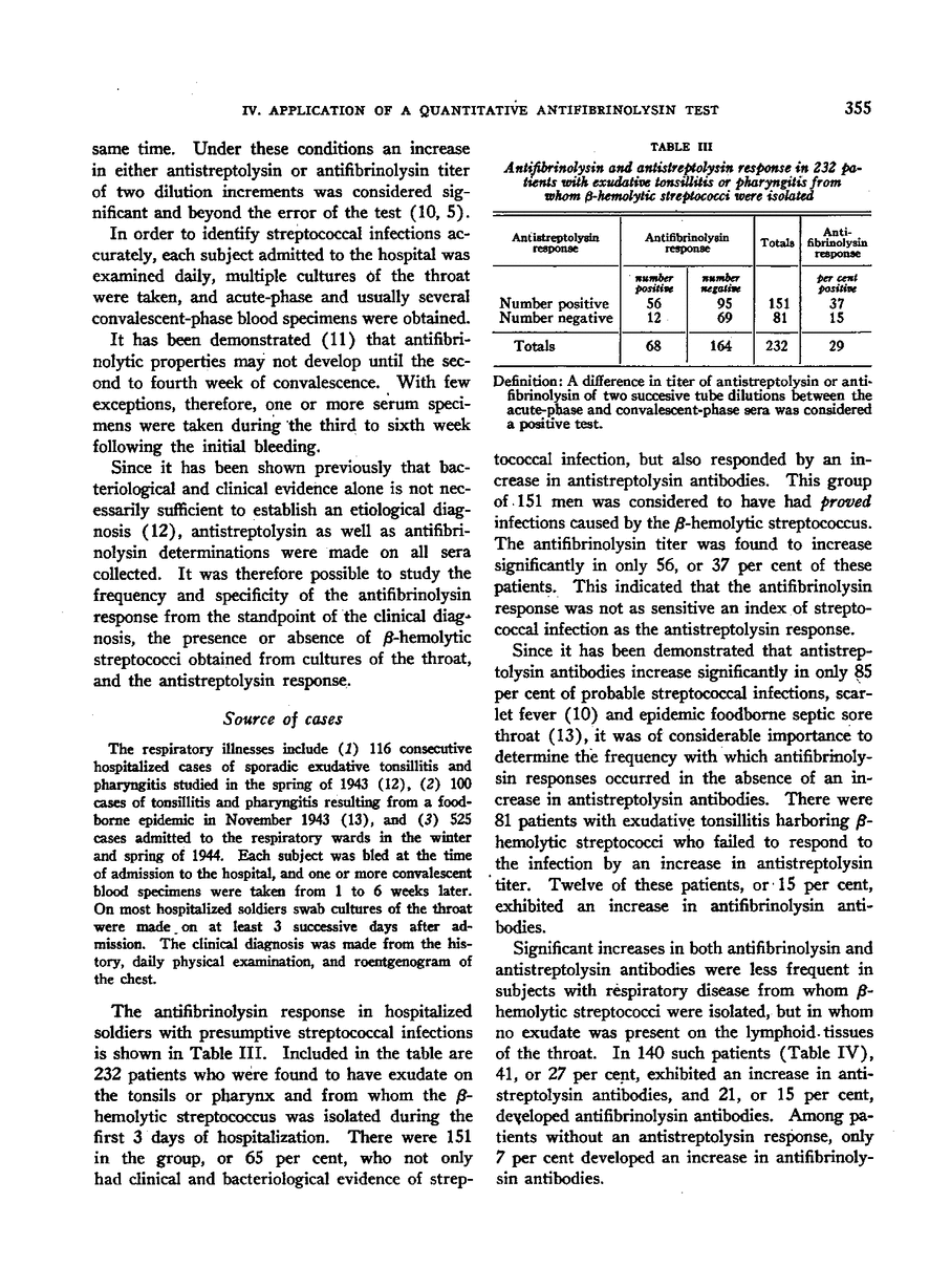 STUDIES OF STREPTOCOCCAL FIBRINOLYSIS. IV. CLINICAL APPLICATION OF A QUANTITATIVE ANTIFIBRINOLYSIN TEST