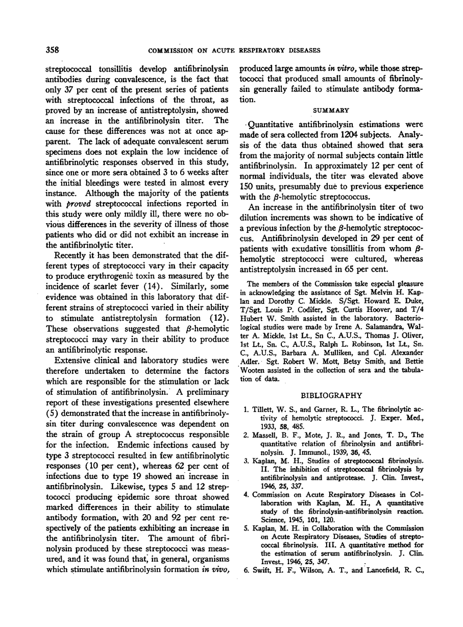 STUDIES OF STREPTOCOCCAL FIBRINOLYSIS. IV. CLINICAL APPLICATION OF A QUANTITATIVE ANTIFIBRINOLYSIN TEST