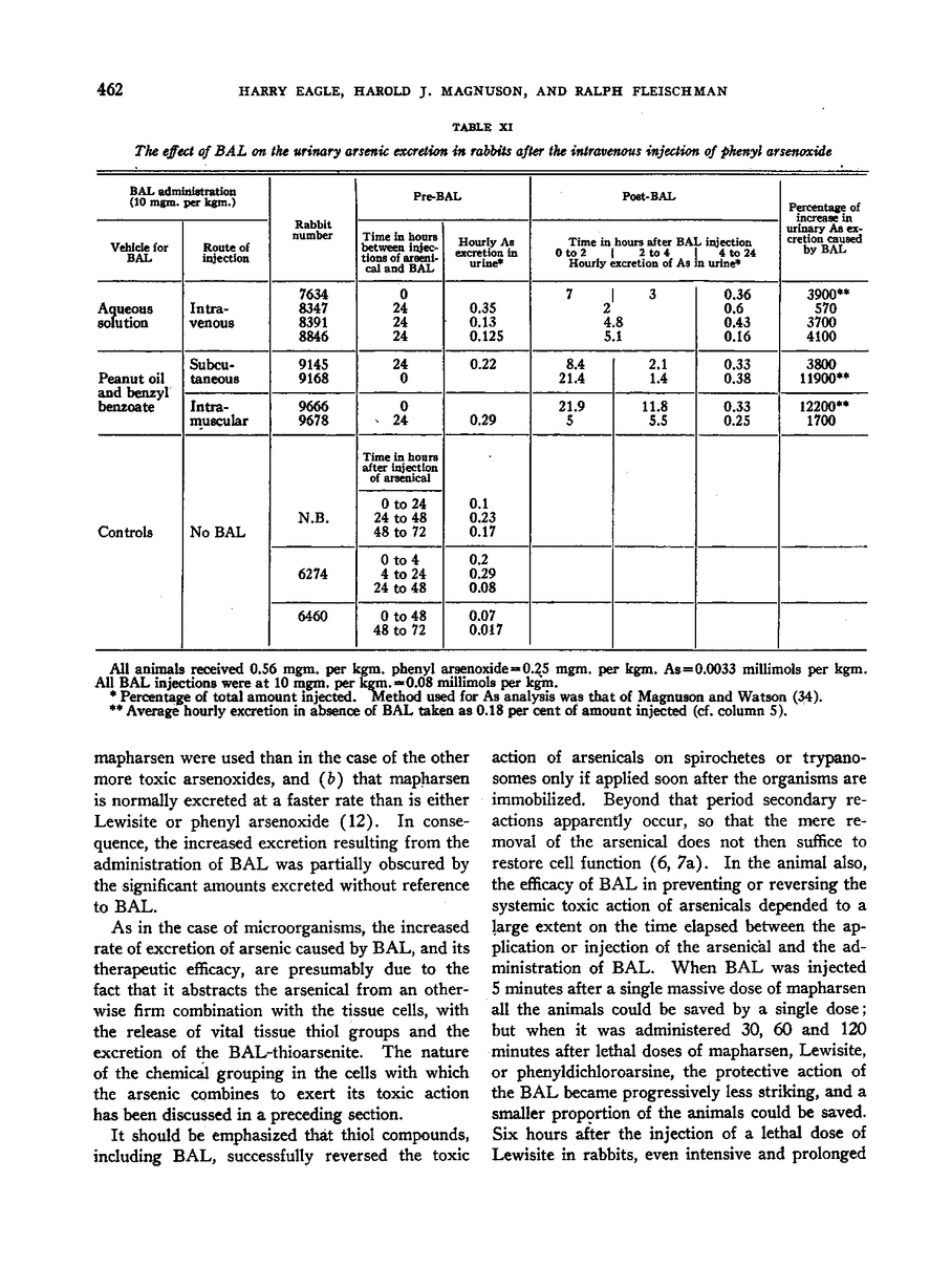 CLINICAL USES OF 2,3—DIMERCAPTOPROPANOL (BAL). I. THE SYSTEMIC TREATMENT OF EXPERIMENTAL ARSENIC POISONING (MAPHARSEN, LEWISITE, PHENYL ARSENOXIDE) WITH BAL