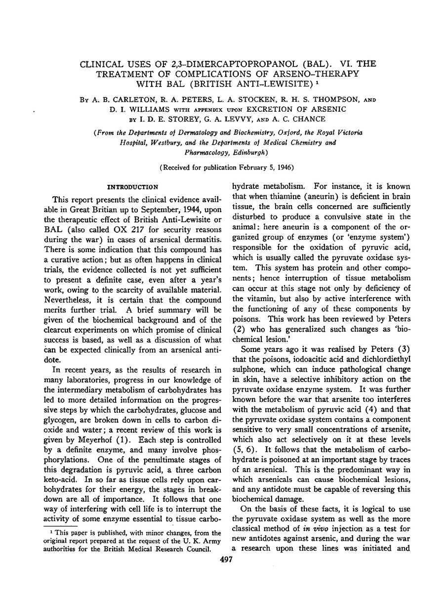 A. B. Carleton, R. A. Peters, L. A. Stocken, R. H. S. Thompson, D. I. Williams, I. D. E. Storey, G. A. Levvy, A. C. Chance