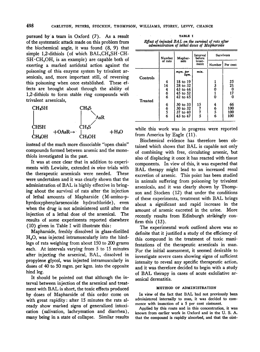 A. B. Carleton, R. A. Peters, L. A. Stocken, R. H. S. Thompson, D. I. Williams, I. D. E. Storey, G. A. Levvy, A. C. Chance