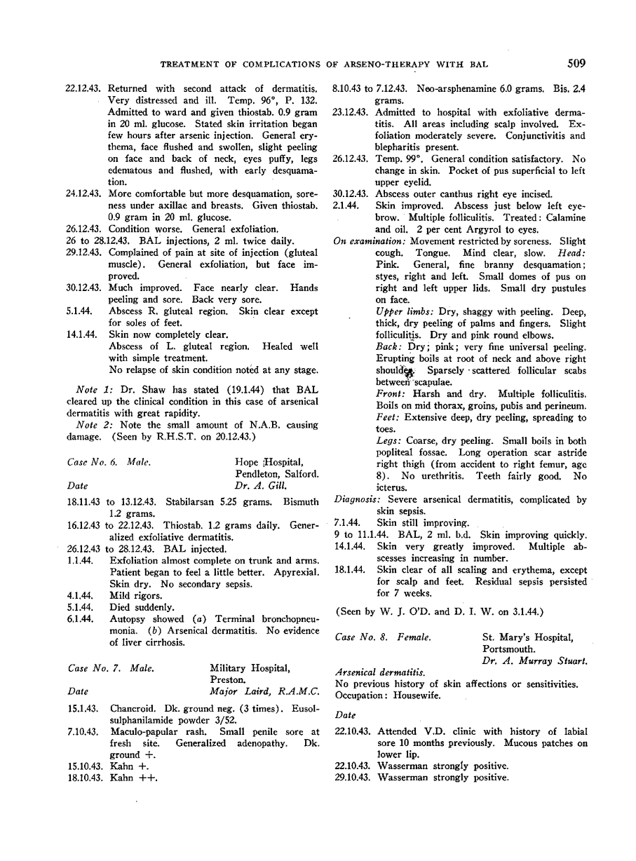 A. B. Carleton, R. A. Peters, L. A. Stocken, R. H. S. Thompson, D. I. Williams, I. D. E. Storey, G. A. Levvy, A. C. Chance