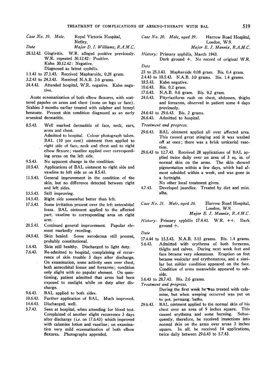CLINICAL USES OF 2,3-DIMERCAPTOPROPANOL (BAL). VI. THE TREATMENT OF COMPLICATIONS OF ARSENO-THERAPY WITH BAL (BRITISH ANTI-LEWISITE)
