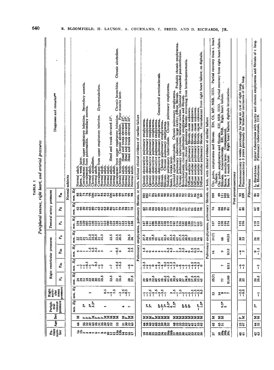 Richard A. Bloomfield, Henry D. Lauson, Andre Cournand, Ernest S. Breed, Dickinson W. Richards Jr.