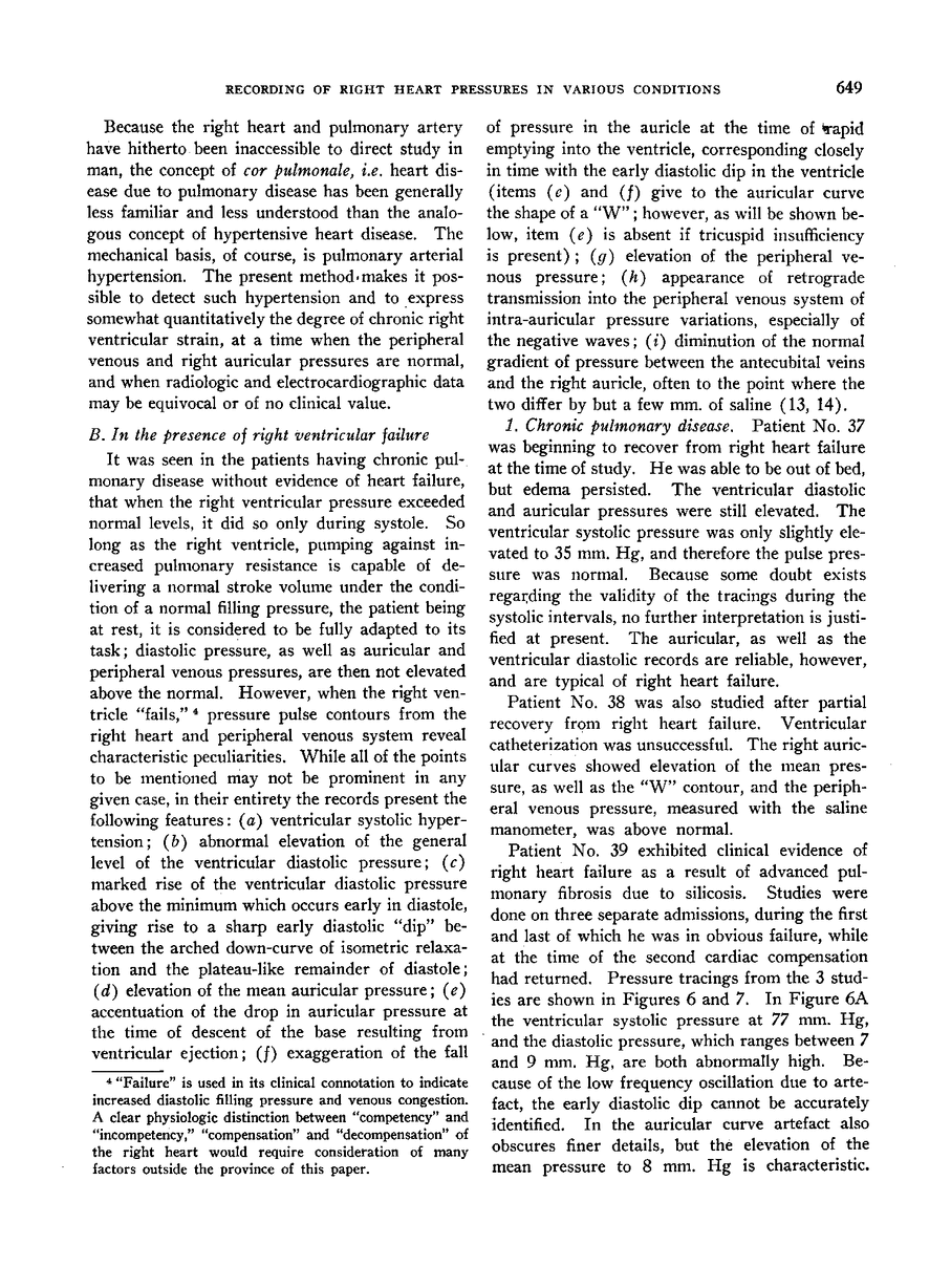 RECORDING OF RIGHT HEART PRESSURES IN NORMAL SUBJECTS AND IN PATIENTS WITH CHRONIC PULMONARY DISEASE AND VARIOUS TYPES OF CARDIO-CIRCULATORY DISEASE