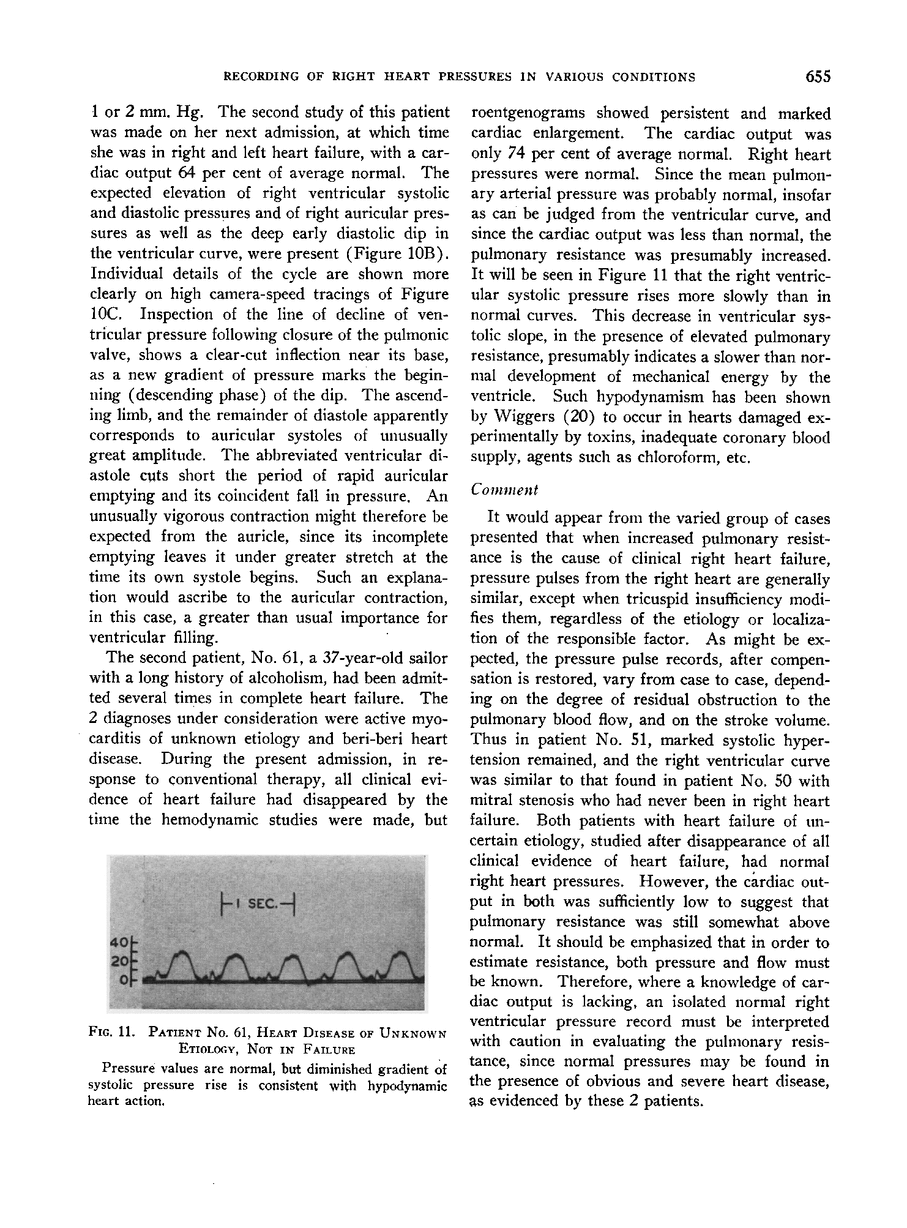 RECORDING OF RIGHT HEART PRESSURES IN NORMAL SUBJECTS AND IN PATIENTS WITH CHRONIC PULMONARY DISEASE AND VARIOUS TYPES OF CARDIO-CIRCULATORY DISEASE