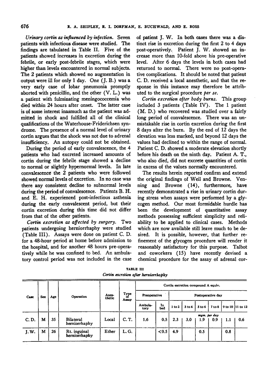 THE EFFECT OF INFECTION AND TRAUMA ON THE EXCRETION OF URINARY CORTIN