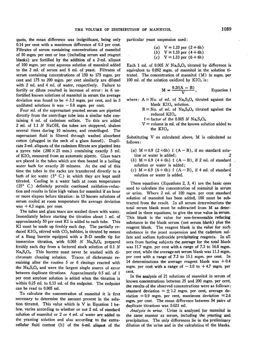 THE VOLUME OF DISTRIBUTION OF MANNITOL AS A MEASURE OF THE VOLUME OF EXTRACELLULAR FLUID, WITH A STUDY OF THE MANNITOL METHOD