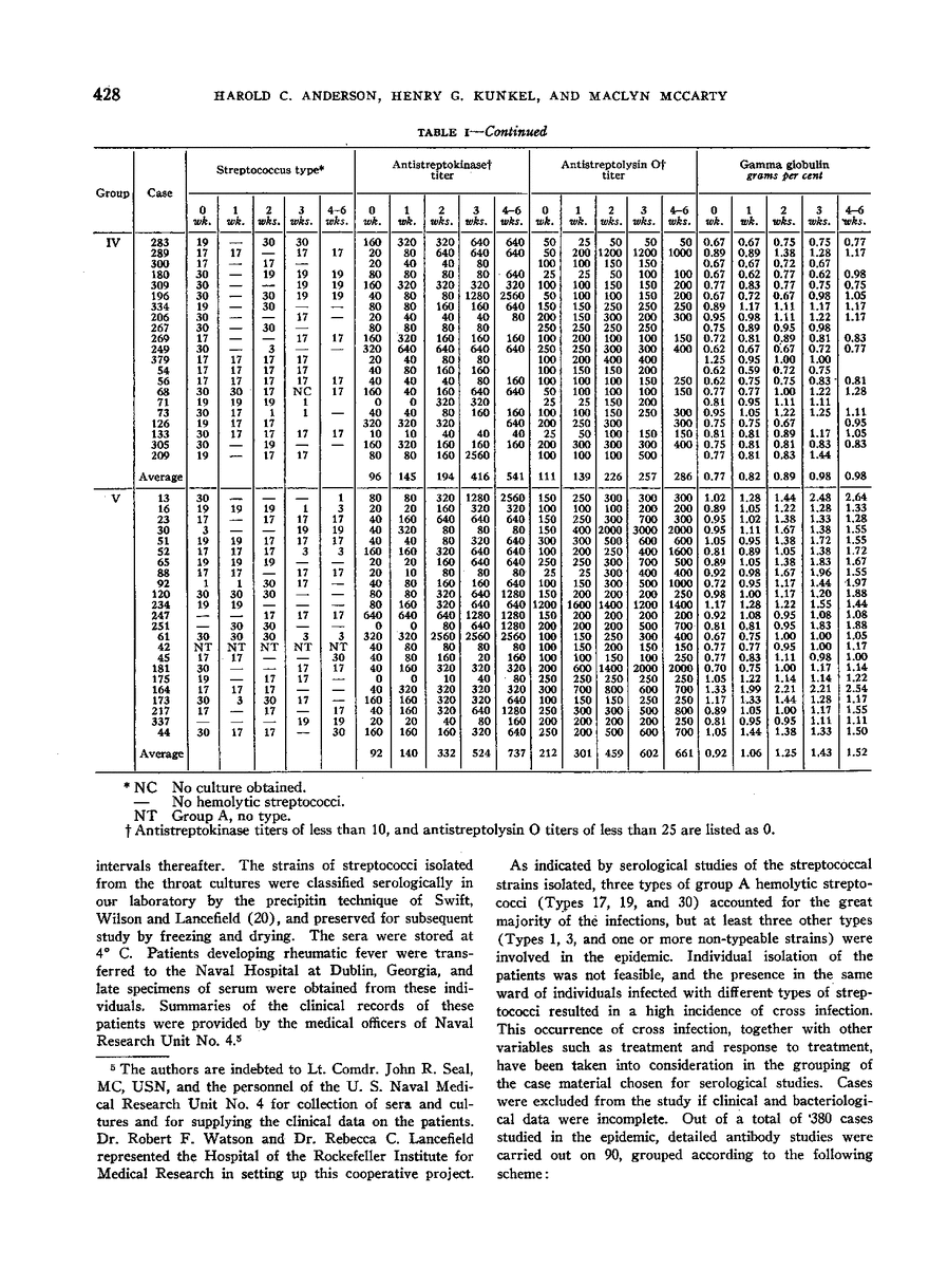 QUANTITATIVE ANTISTREPTOKINASE STUDIES IN PATIENTS INFECTED WITH GROUP A HEMOLYTIC STREPTOCOCCI: A COMPARISON WITH SERUM ANTISTREPTOLYSIN AND GAMMA GLOBULIN LEVELS WITH SPECIAL REFERENCE TO THE OCCURRENCE OF RHEUMATIC FEVER