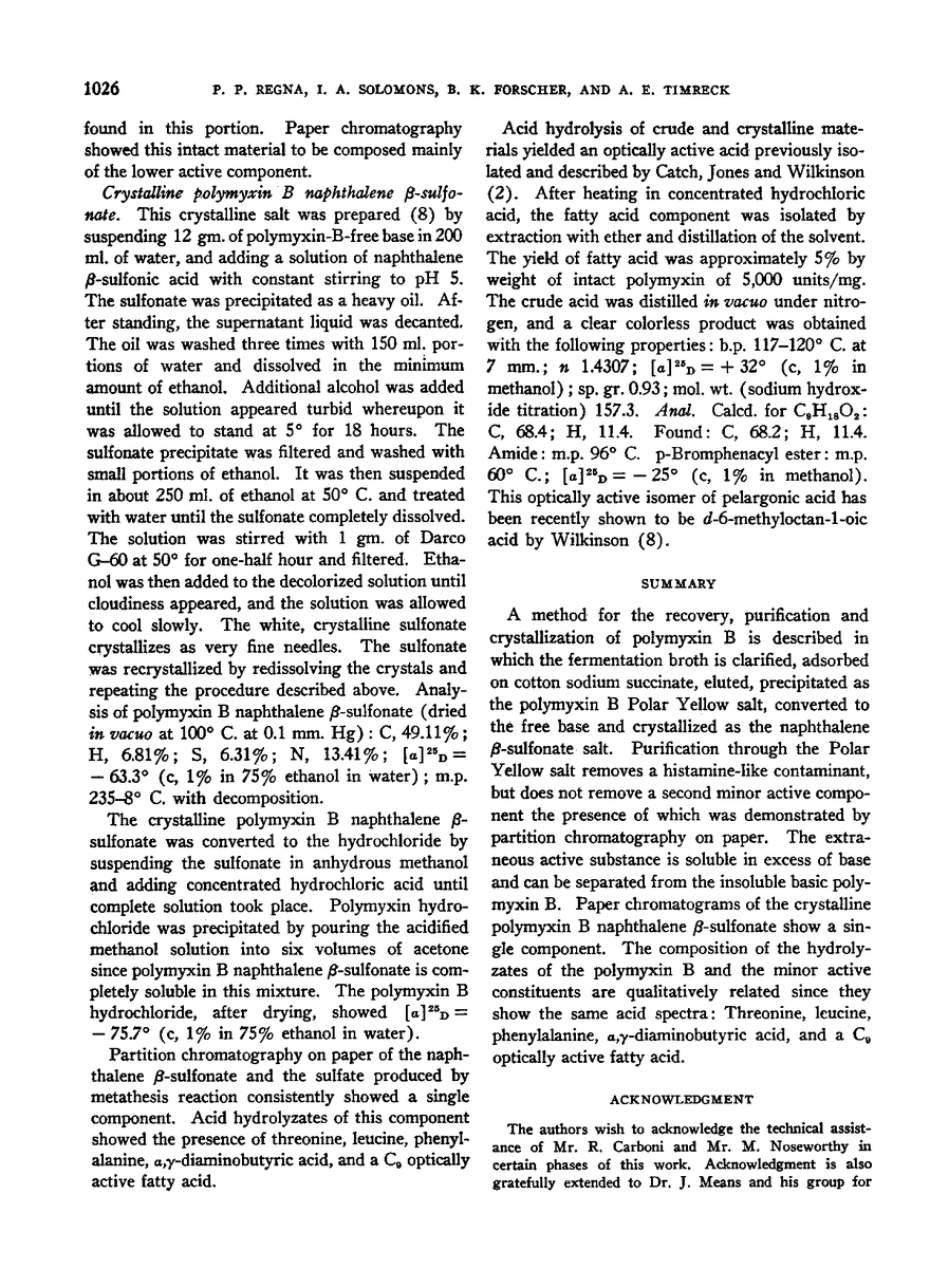 Peter P. Regna, I. A. Solomons, Bernard K. Forscher, Albert E. Timreck