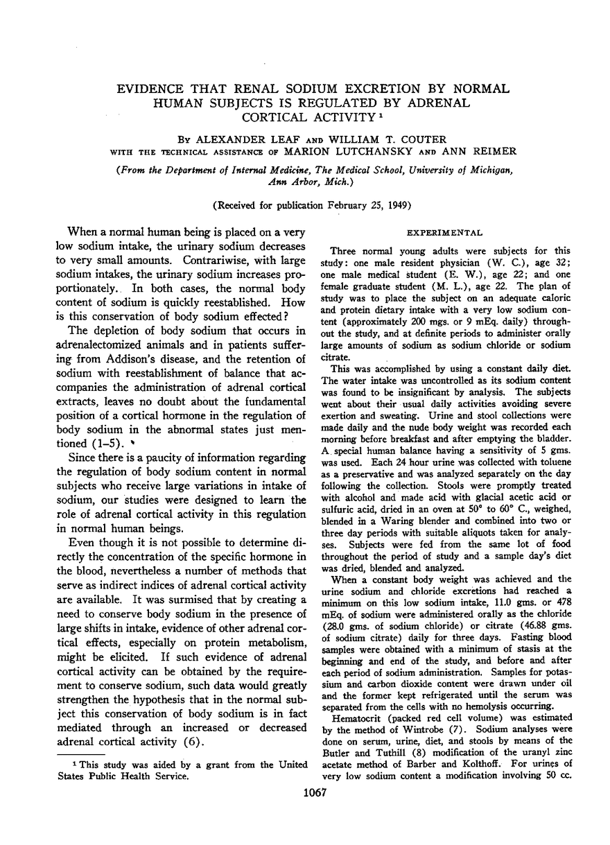 Alexander Leaf, William T. Couter, Marion Lutchansky, Ann Reimer