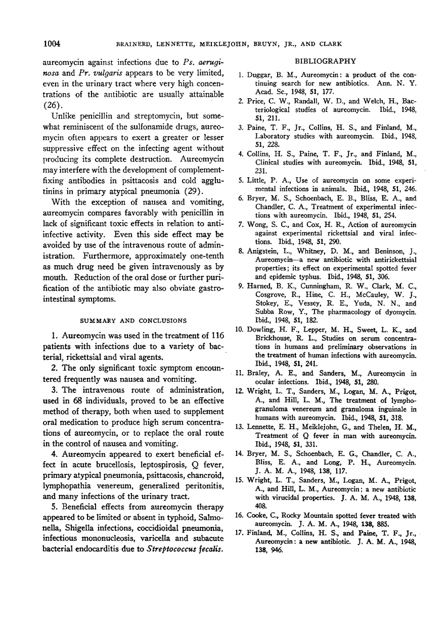 THE CLINICAL EVALUATION OF AUREOMYCIN