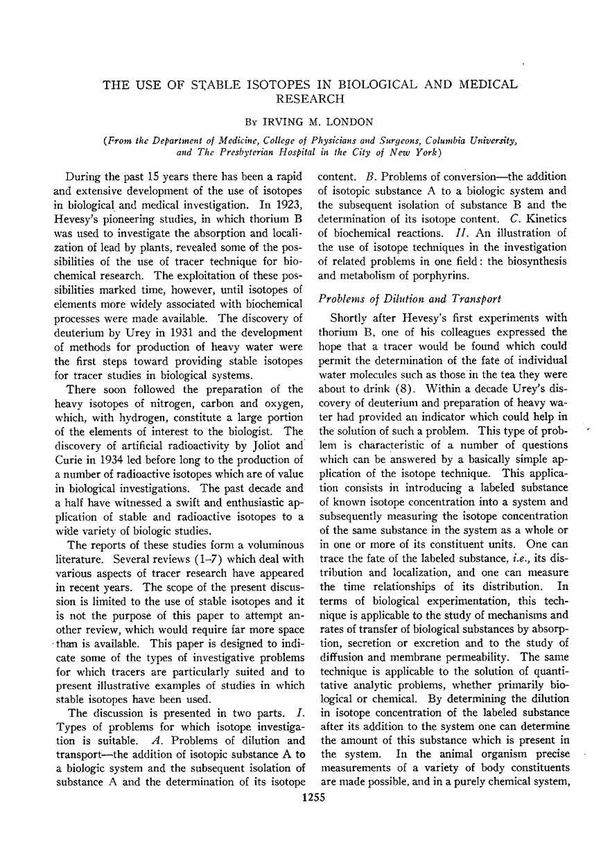 THE USE OF STABLE ISOTOPES IN BIOLOGICAL AND MEDICAL RESEARCH