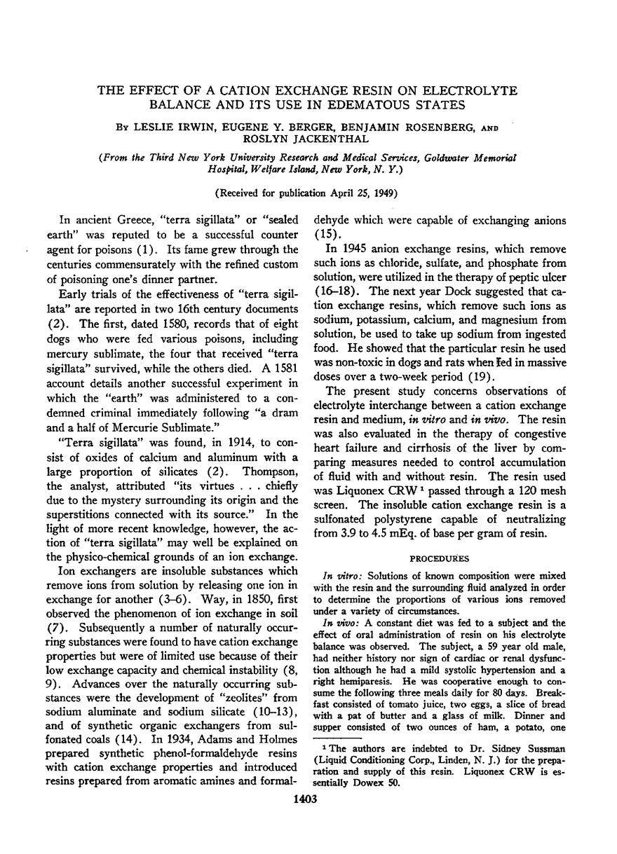 THE EFFECT OF A CATION EXCHANGE RESIN ON ELECTROLYTE BALANCE AND ITS USE IN EDEMATOUS STATES
