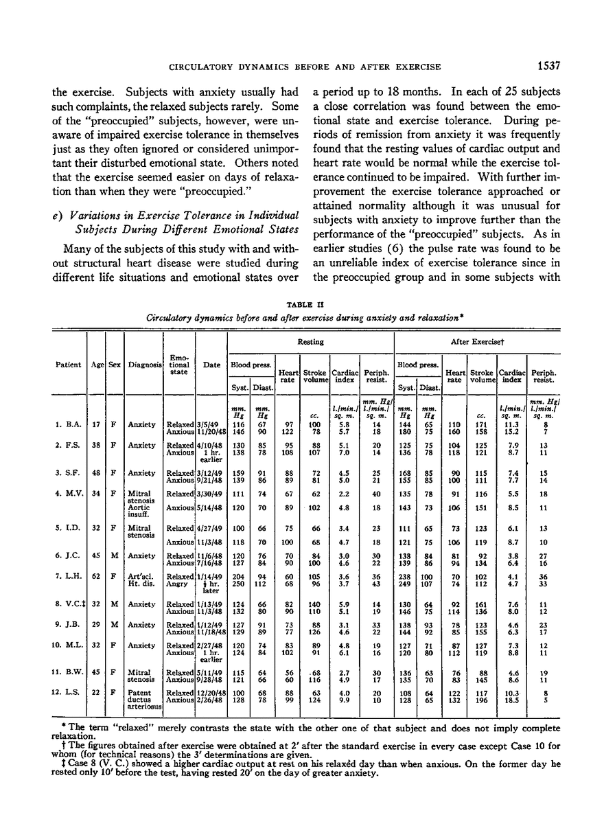 CIRCULATORY DYNAMICS BEFORE AND AFTER EXERCISE IN SUBJECTS WITH AND WITHOUT STRUCTURAL HEART DISEASE DURING ANXIETY AND RELAXATION