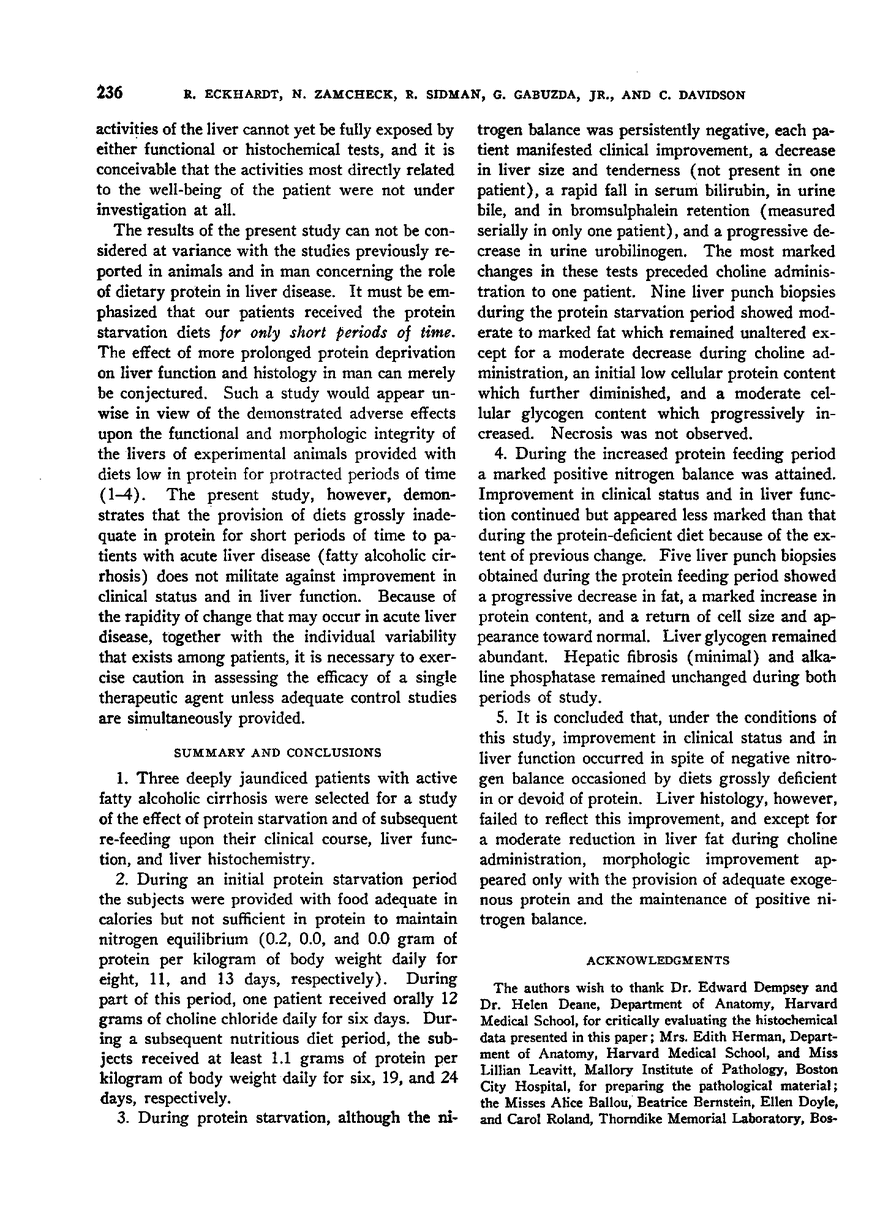 EFFECT OF PROTEIN STARVATION AND OF PROTEIN FEEDING ON THE CLINICAL COURSE, LIVER FUNCTION, AND LIVER HISTOCHEMISTRY OF THREE PATIENTS WITH ACTIVE FATTY ALCOHOLIC CIRRHOSIS