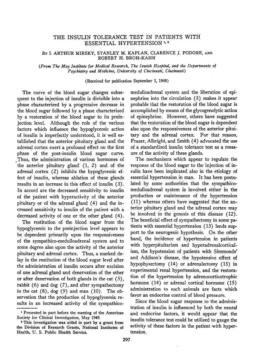 I. Arthur Mirsky, Stanley M. Kaplan, Clarence J. Podore, Robert H. Broh-Kahn