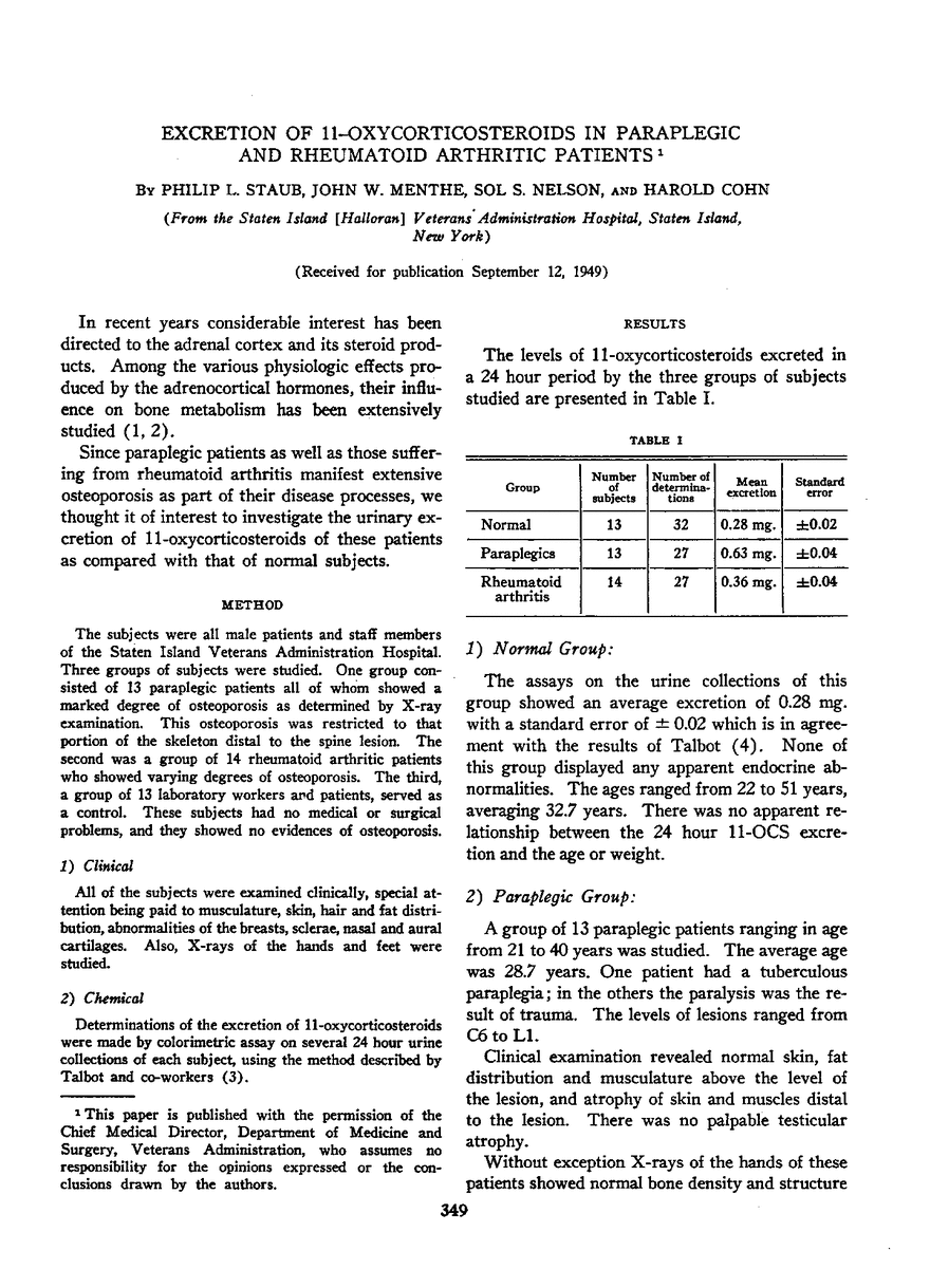 EXCRETION OF 11-OXYCORTICOSTEROIDS IN PARAPLEGIC AND RHEUMATOID ARTHRITIC PATIENTS