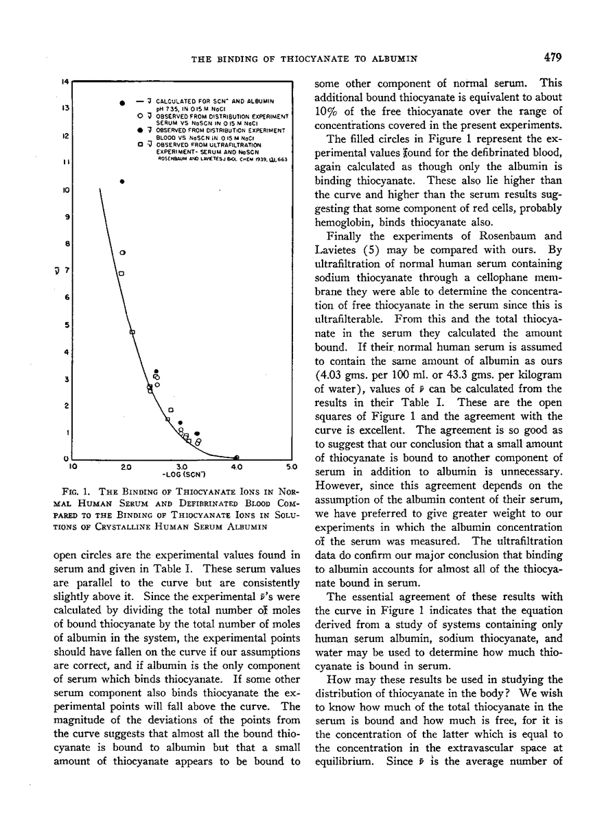 THE BINDING OF THIOCYANATE TO ALBUMIN IN NORMAL HUMAN SERUM AND DEFIBRINATED BLOOD WITH REFERENCE TO THE DETERMINATION OF “THIOCYANATE SPACE”