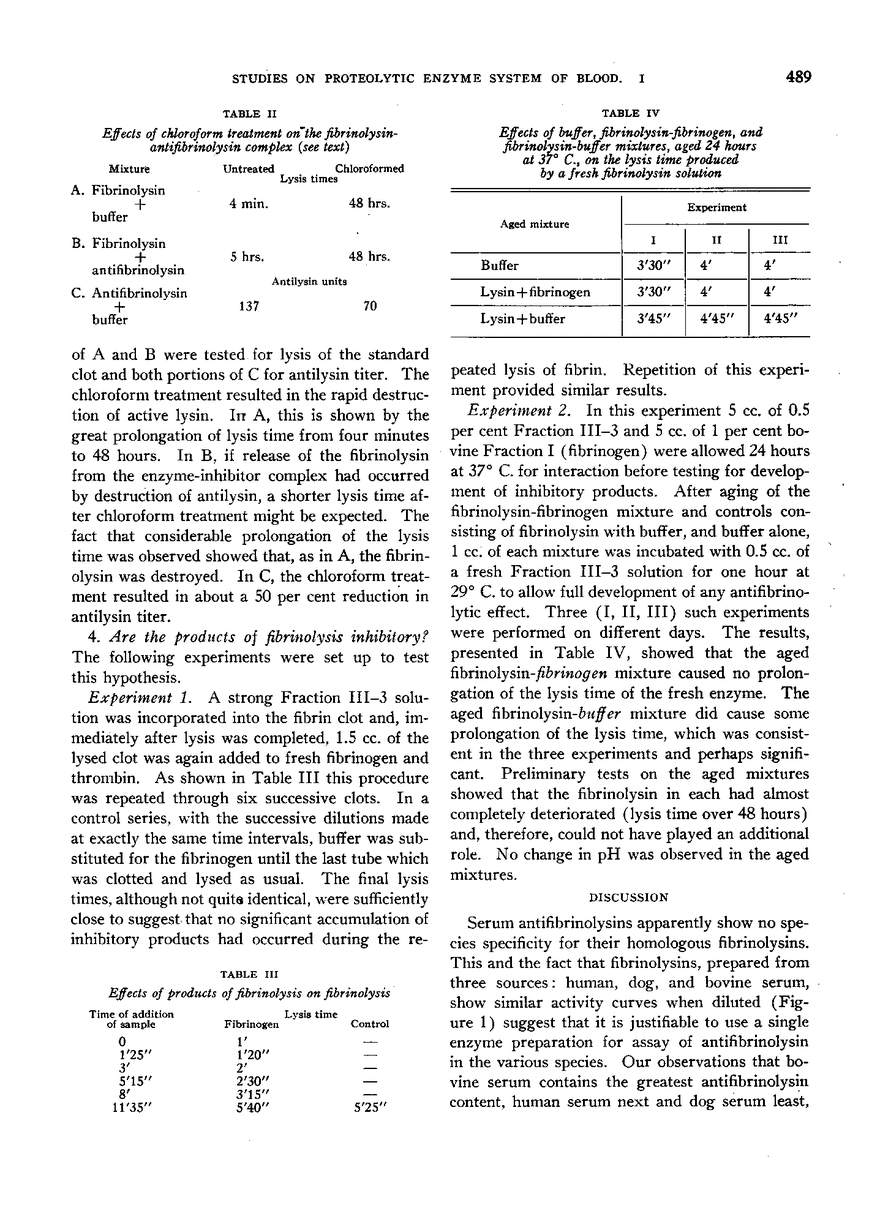 STUDIES ON A PROTEOLYTIC ENZYME SYSTEM OF THE BLOOD. I. INHIBITION OF FIBRINOLYSIN