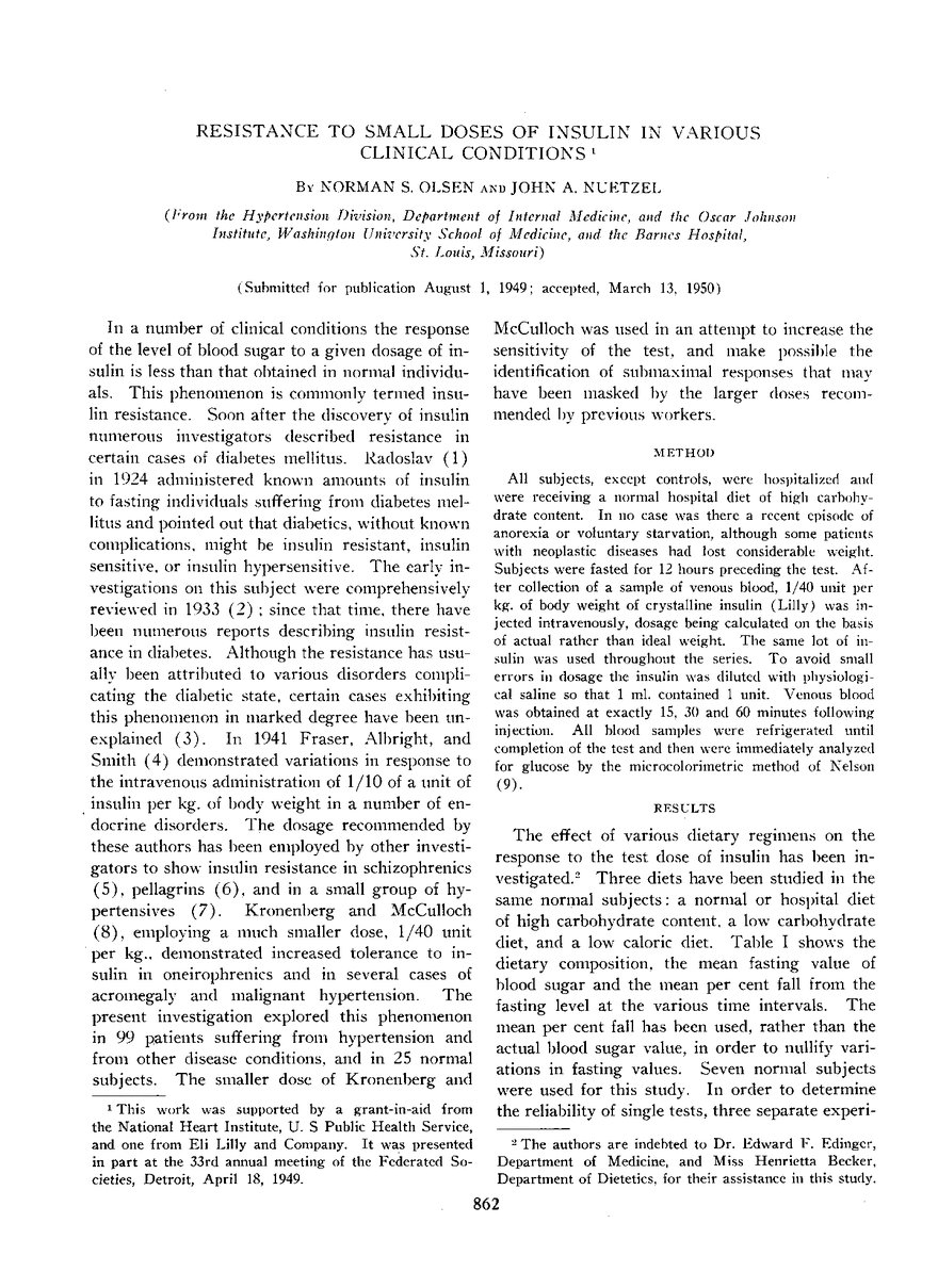 RESISTANCE TO SMALL DOSES OF INSULIN IN VARIOUS CLINICAL CONDITIONS