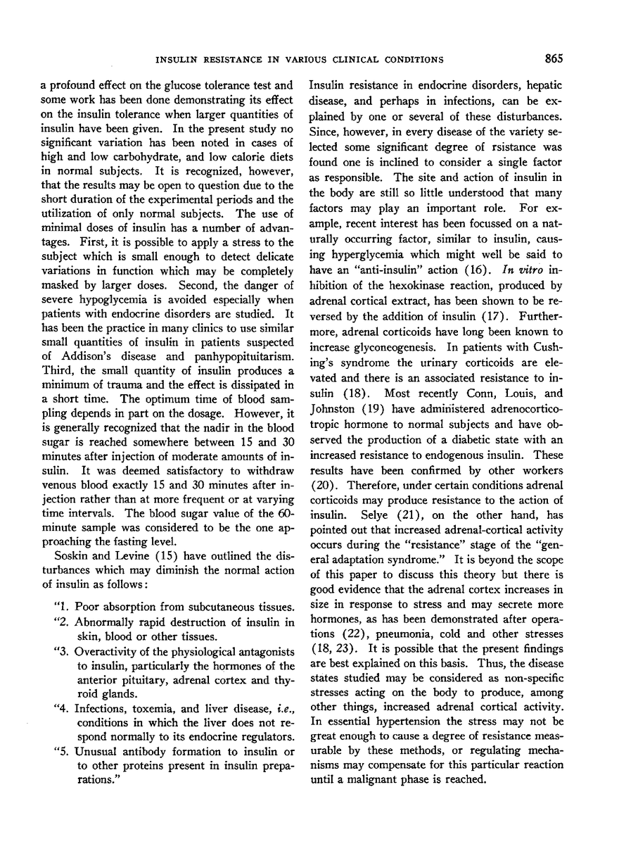 RESISTANCE TO SMALL DOSES OF INSULIN IN VARIOUS CLINICAL CONDITIONS
