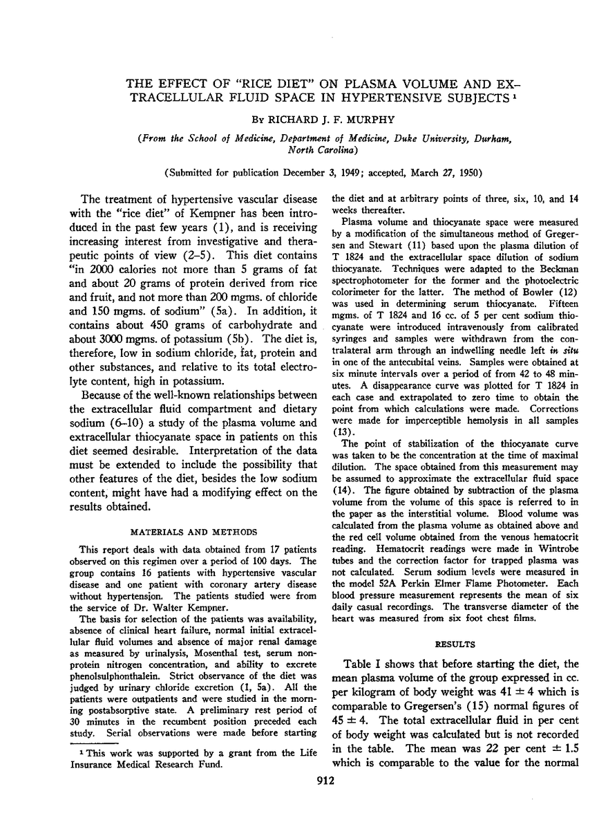 THE EFFECT OF “RICE DIET” ON PLASMA VOLUME AND EXTRACELLULAR FLUID SPACE IN HYPERTENSIVE SUBJECTS