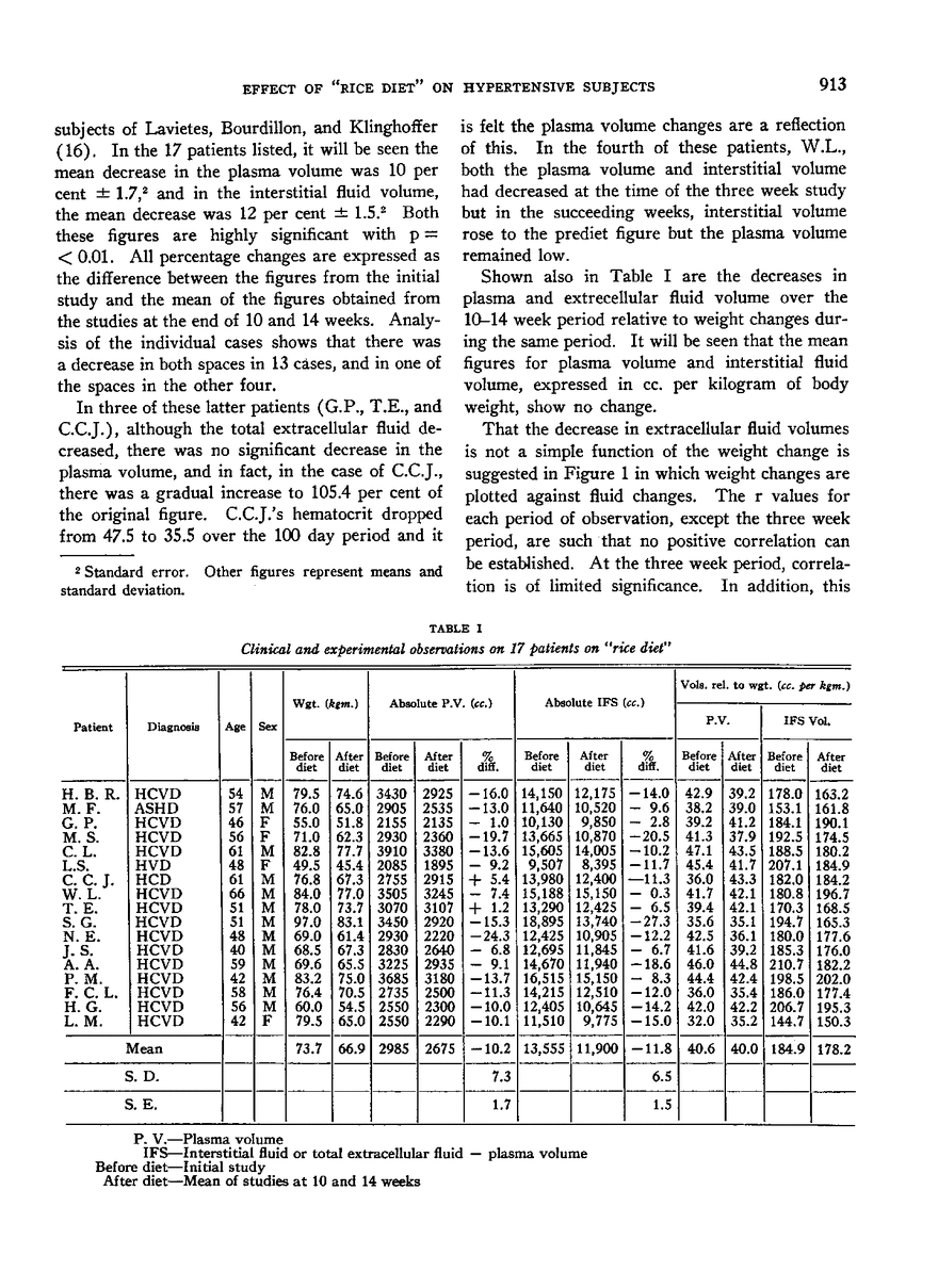 THE EFFECT OF “RICE DIET” ON PLASMA VOLUME AND EXTRACELLULAR FLUID SPACE IN HYPERTENSIVE SUBJECTS