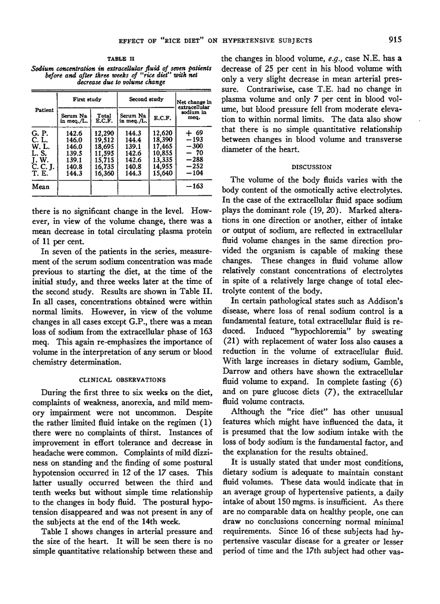 THE EFFECT OF “RICE DIET” ON PLASMA VOLUME AND EXTRACELLULAR FLUID SPACE IN HYPERTENSIVE SUBJECTS