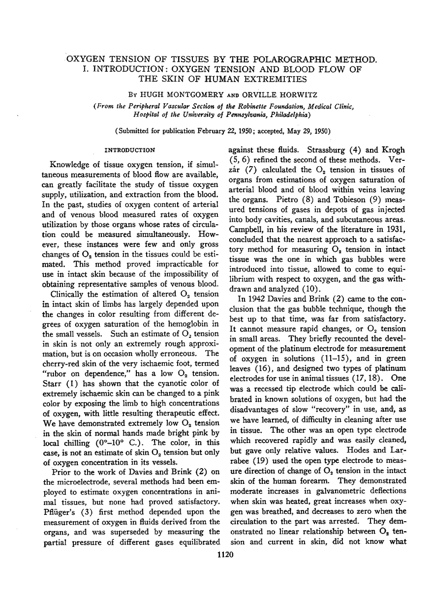 OXYGEN TENSION OF TISSUES BY THE POLAROGRAPHIC METHOD. I. INTRODUCTION: OXYGEN TENSION AND BLOOD FLOW OF THE SKIN OF HUMAN EXTREMITIES