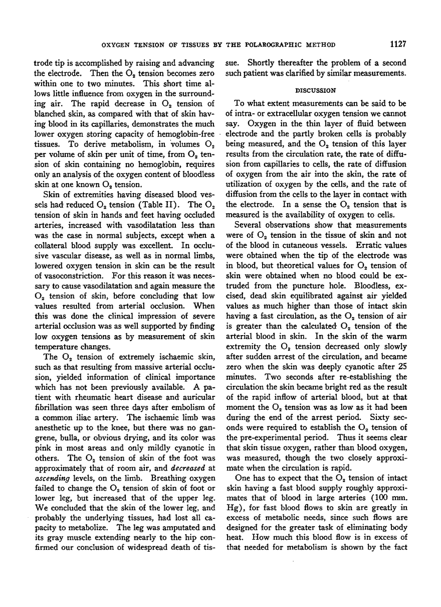 OXYGEN TENSION OF TISSUES BY THE POLAROGRAPHIC METHOD. I. INTRODUCTION: OXYGEN TENSION AND BLOOD FLOW OF THE SKIN OF HUMAN EXTREMITIES