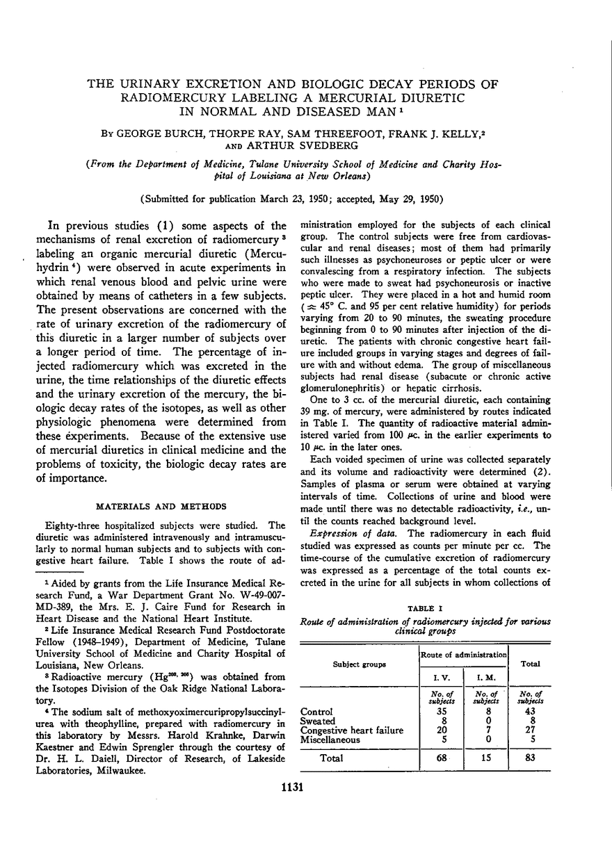 THE URINARY EXCRETION AND BIOLOGIC DECAY PERIODS OF RADIOMERCURY LABELING A MERCURIAL DIURETIC IN NORMAL AND DISEASED MAN