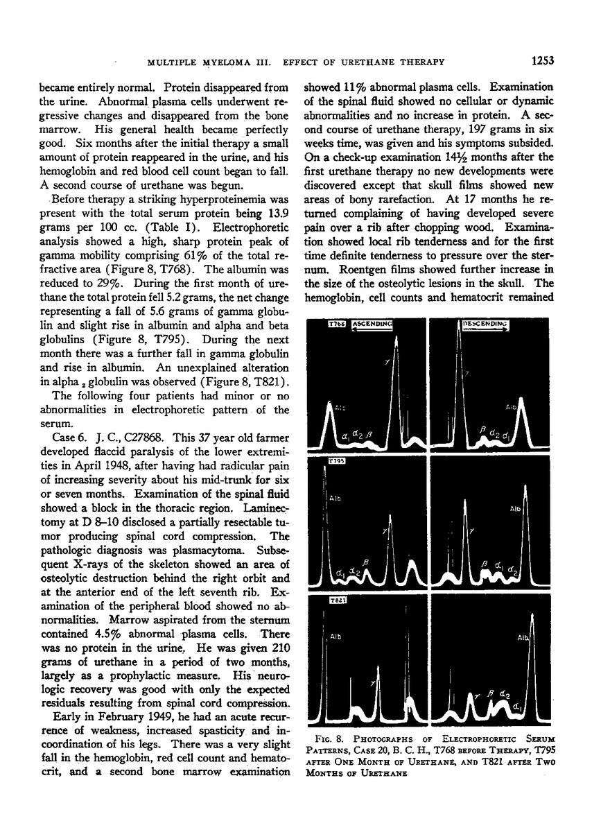 MULTIPLE MYELOMA. III. EFFECT OF URETHANE THERAPY ON PLASMA CELL GROWTH, ABNORMAL SERUM PROTEIN COMPONENTS AND BENCE JONES PROTEINURIA